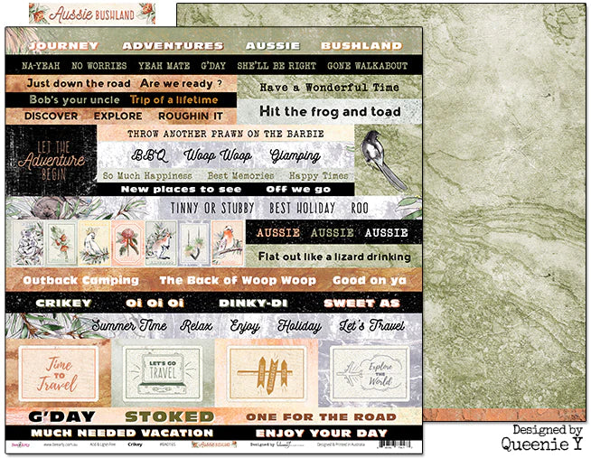 AN ABSOLUTELY BEAUTIFUL COLLECTION OF 12" X 12" DOUBLE SIDED PAGES EXCLUSIVELY DESIGNED BY QUEENIE Y AS PART OF THE AUSSIE BUSHLAND RANGE