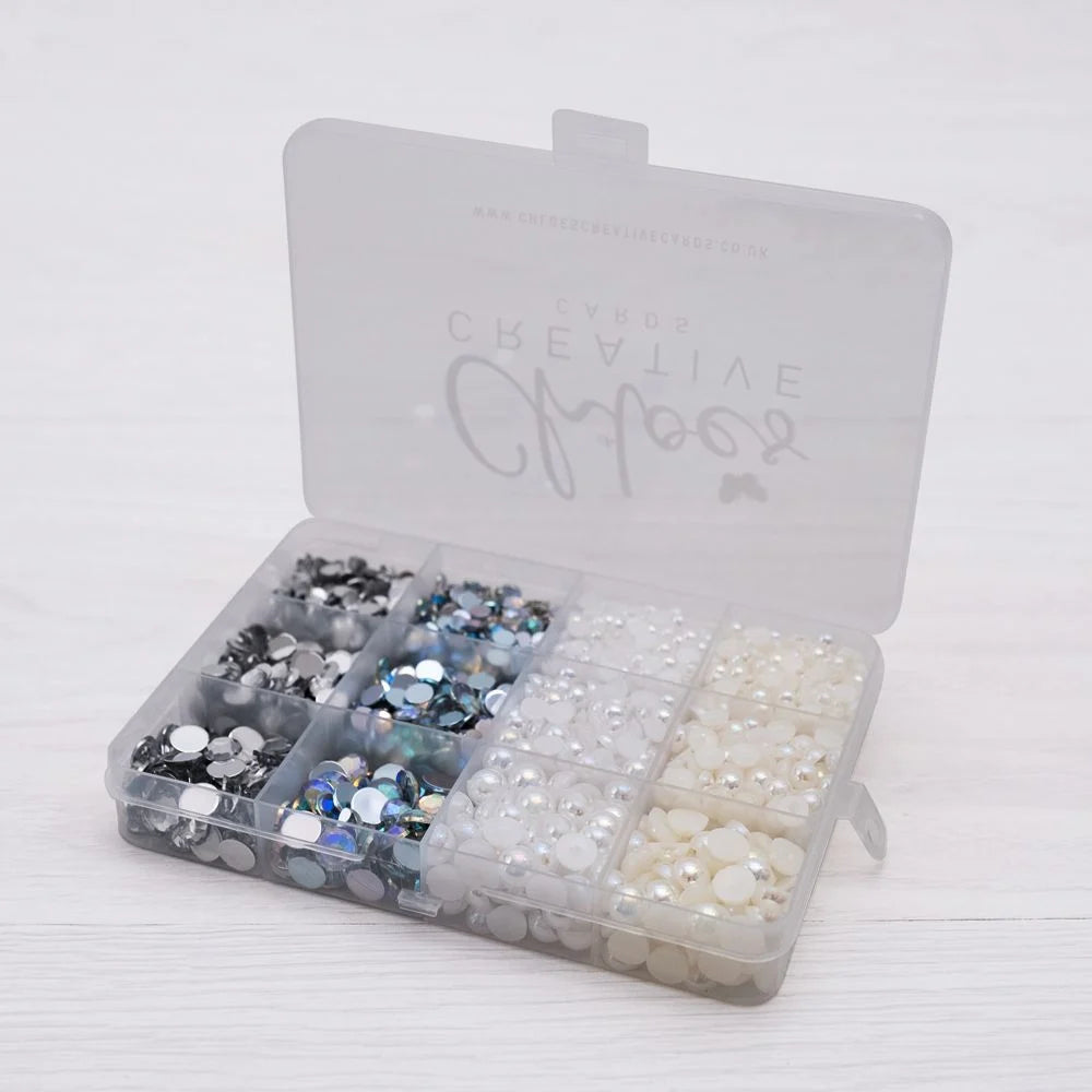 FOR ALL OF YOU WHO LOVE A BIT OF SPARKLE ON YOUR PROJECTS THIS AMAZING BLING BOX IS PACKED WITH 2,300 INDIVIDUAL RHINESTONE EMBELLISHMENTS SPLIT ACROSS 4 COLOURS AND IN 3 DIFFERENT SIZES - 5MM, 6MM AND 8MM