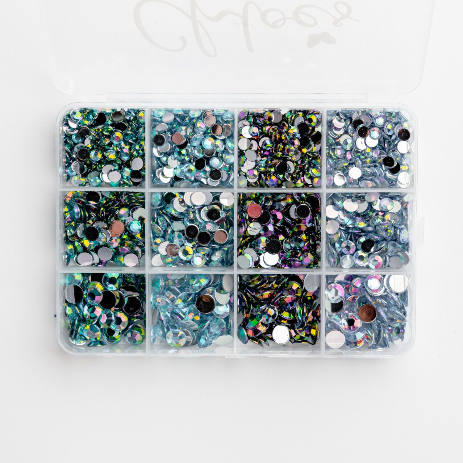 FOR ALL OF YOU WHO LOVE A BIT OF SPARKLE ON YOUR PROJECTS THIS AMAZING BLING BOX IS PACKED WITH 2,300 INDIVIDUAL RHINESTONE EMBELLISHMENTS SPLIT ACROSS 4 COLOURS AND IN 3 DIFFERENT SIZES - 5MM, 6MM AND 8MM