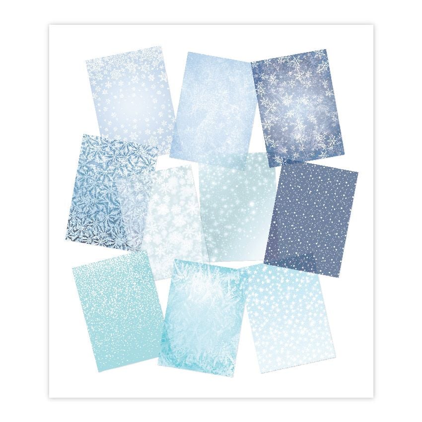CONTAINING 10 SHEETS OF SNOWFLAKE/WINTER EFFECTS, HIGH QUALITY A5 VELLUM SHEETS IN VARIOUS SHADES OF BLUE, YOU CAN CREATE BEAUTIFUL BACKGROUNDS, FRAMES, 3D FLOWERS, GIFT TAGS, MINI ENVELOPES, BANNERS, BORDERS AND SO MUCH MORE!