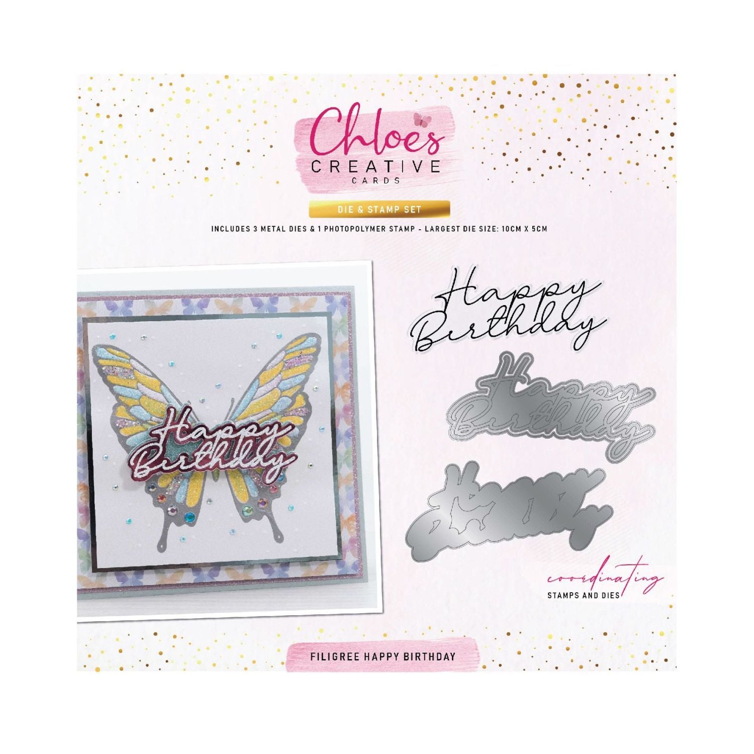 CHLOES CREATIVE CARDS DIE & STAMP SET - FILIGREE HAPPY BIRTHDAY