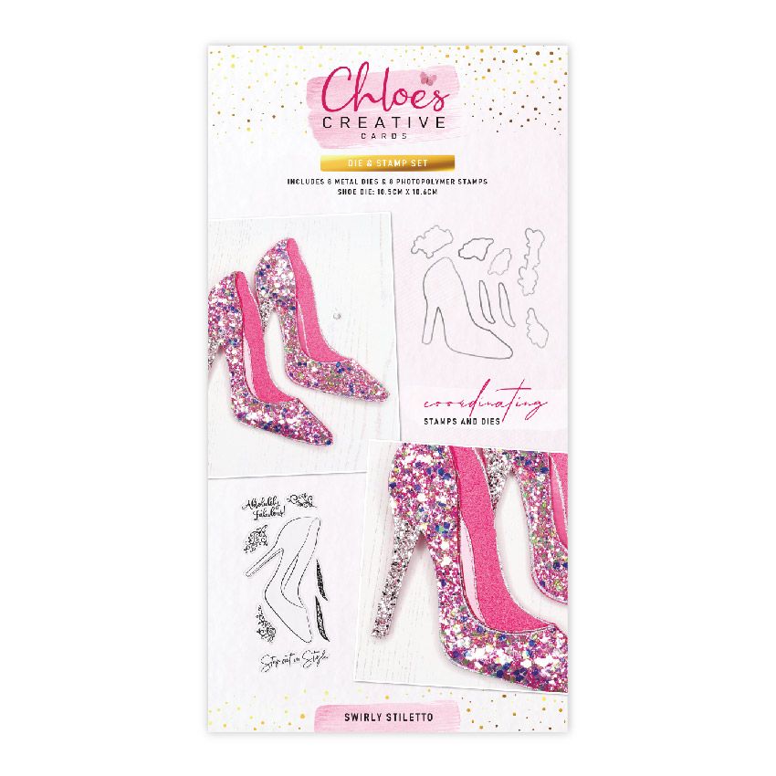 CHLOES CREATIVE CARDS DIE & STAMP SET - SWIRLY STILETTO
