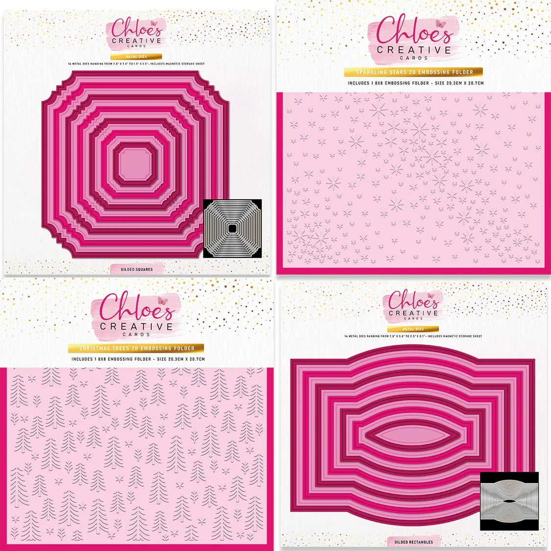 CHLOE'S CREATIVE CARDS - GILDED CHRISTMAS EMBOSSING FOLDERS/DIES - "I NEED IT ALL BUNDLE"