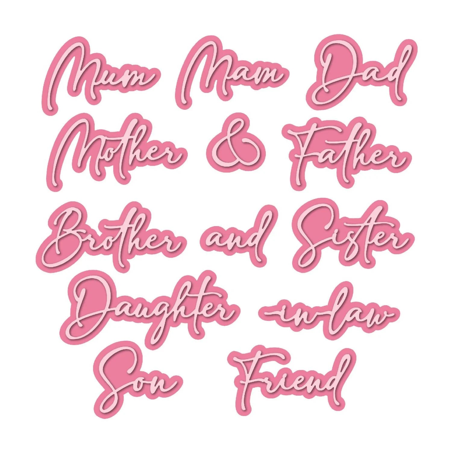 THE NEW CHLOES CREATIVE CARDS RELATIVES 1 METAL DIE SET WITH VARIOUS SIZES AND CONCEPT COMBINATIONS PERFECT FOR ALL YOUR CRAFTING PROJECTS