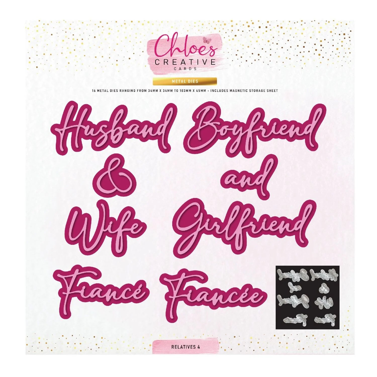 THE NEW CHLOES CREATIVE CARDS RELATIVES 4 METAL DIE SET WITH VARIOUS SIZES AND CONCEPT COMBINATIONS PERFECT FOR ALL YOUR CRAFTING PROJECTS