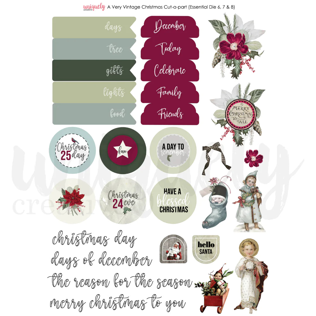 A VERY VINTAGE CHRISTMAS A4 CUT-A-PART SHEET BY UNIQUELY CREATIVE