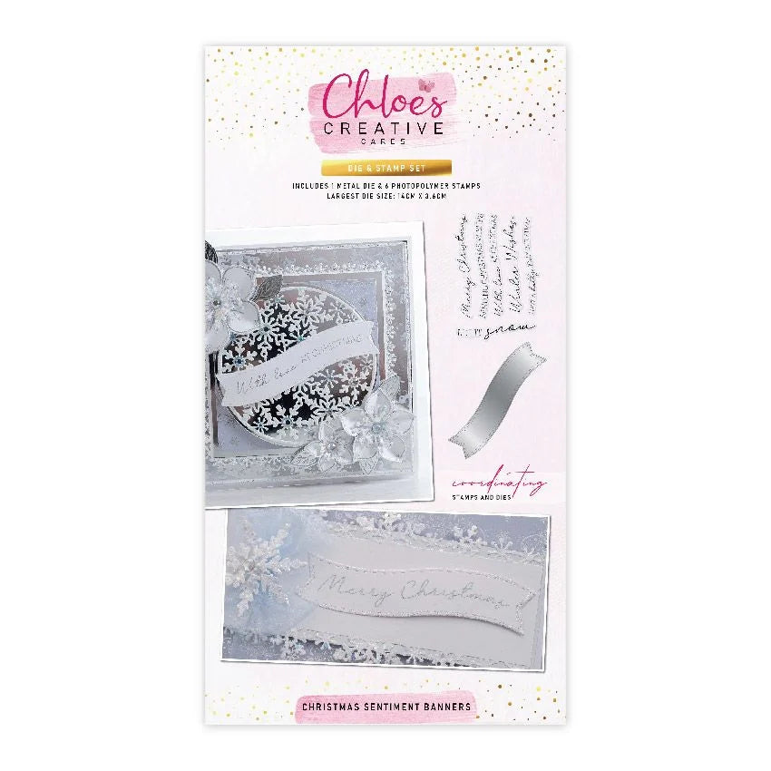 THIS PREMIUM QUALITY CHRISTMAS SENTIMENT BANNERS CLEAR PHOTOPOLYMER STAMP AND DIE SET BY CHLOES CREATIVE CARDS WORK PERFECTLY TOGETHER