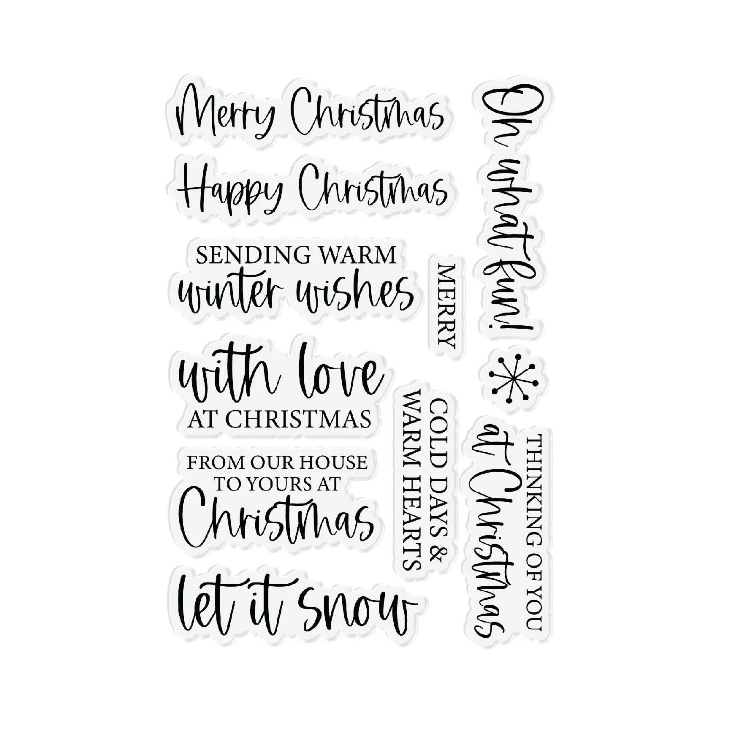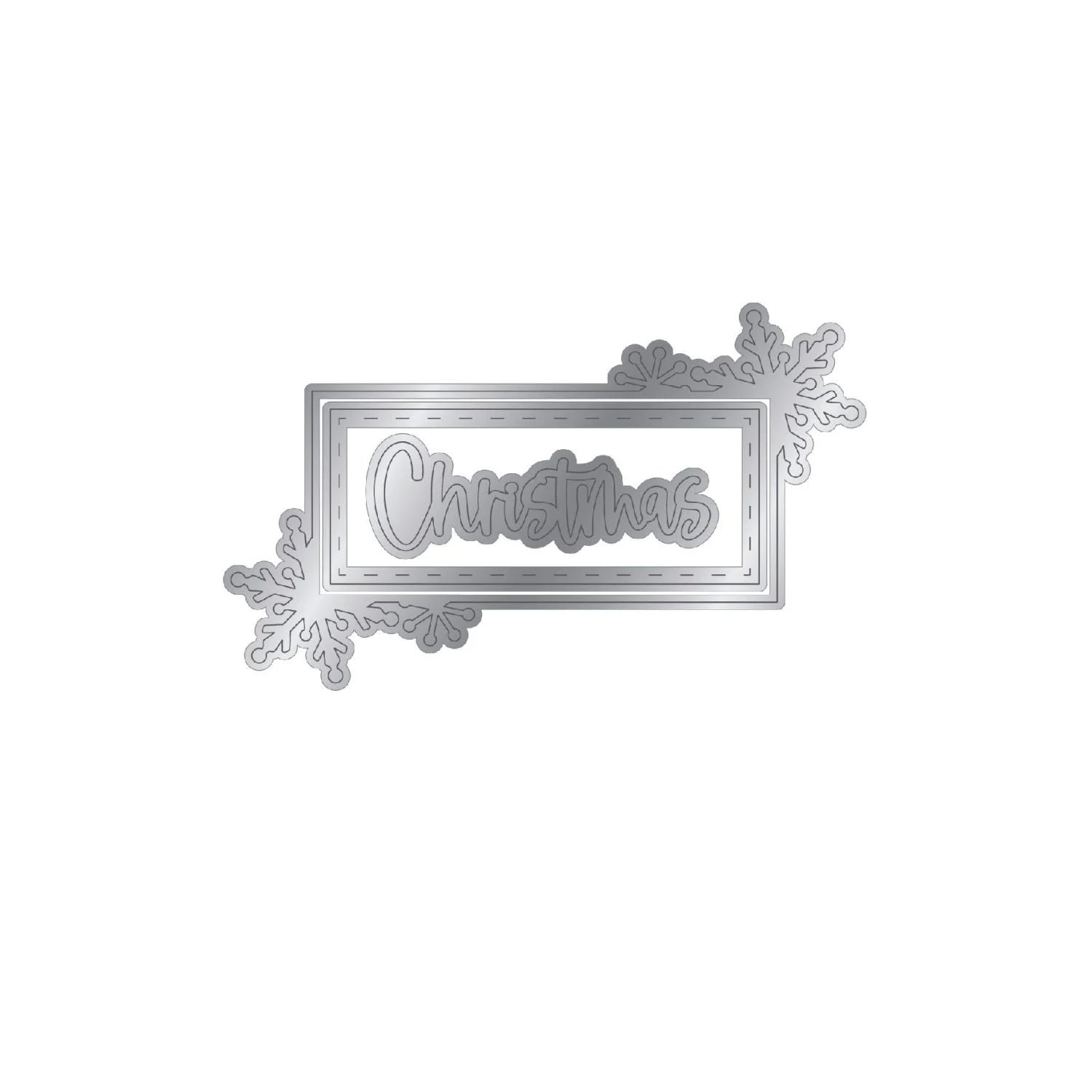THIS SNOWFLAKE SENTIMENT STAMP & DIE SET WILL ENABLE YOU TO MAKE A GREAT SELECTION OF CHRISTMAS THEMED SENTIMENTS BY MIXING AND MATCHING THE VARIOUS STAMPS WITH THE "CHRISTMAS" METAL DIE.