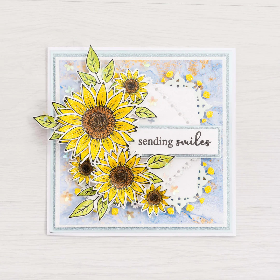 CREATE EYE CATCHING 3D SUNFLOWERS USING TECHNIQUES SUCH AS HEAT EMBOSSING, WATERCOLOUR WASHING AND ALCOHOL PEN COLOURING FOR A HOST OF PAPERCRAFTING PROJECTS
