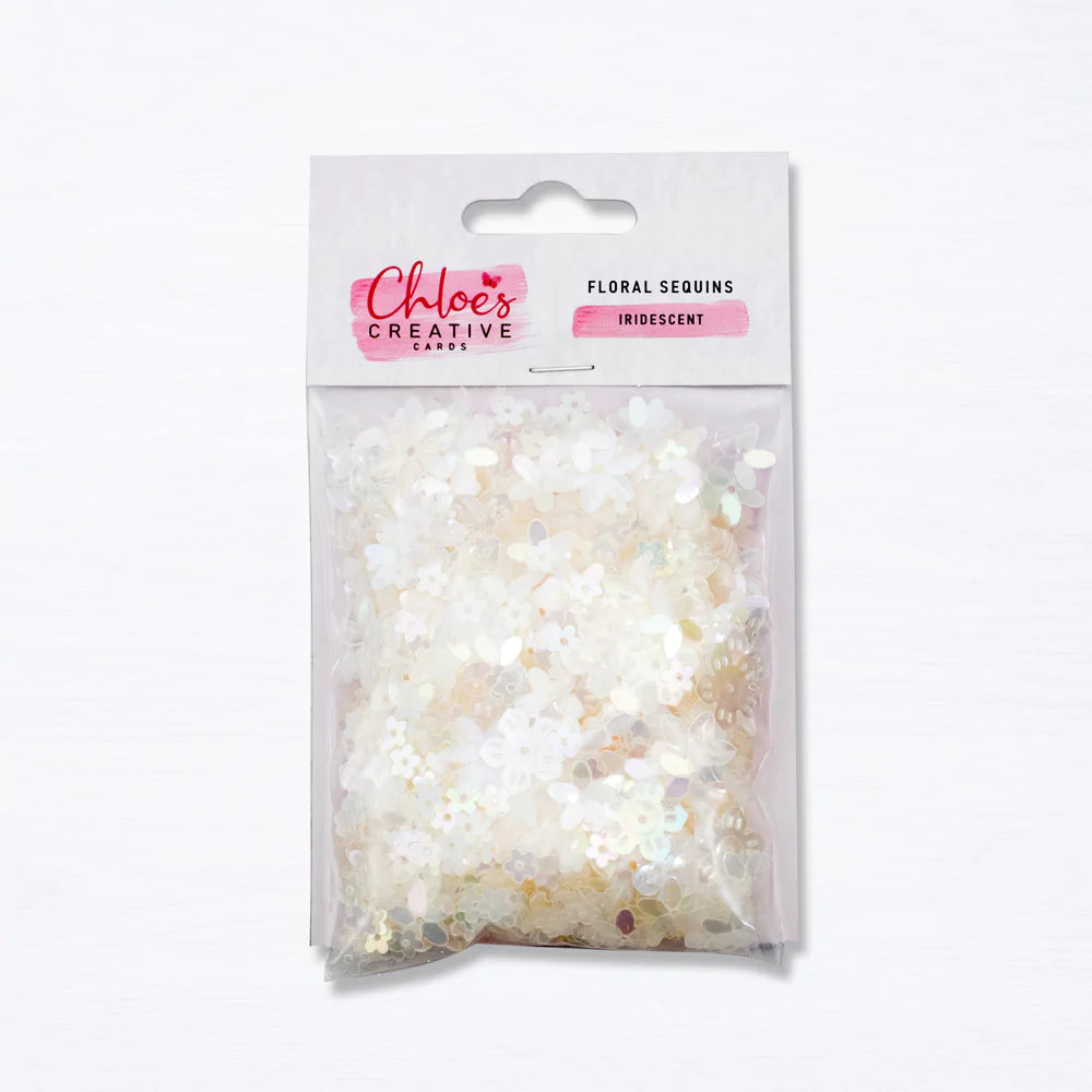 THIS JAM PACKED BAG OF IRIDESCENT FLORAL SEQUINS IN MIXED SIZES IS PERFECT FOR ADDING PRETTY, FLOWER SHAPED EMBELLISHMENTS TO YOUR CARDS, SCRAPBOOKING LAYOUT, GIFT TAGS OR ANY OTHER PAPERCRAFT PROJECTS