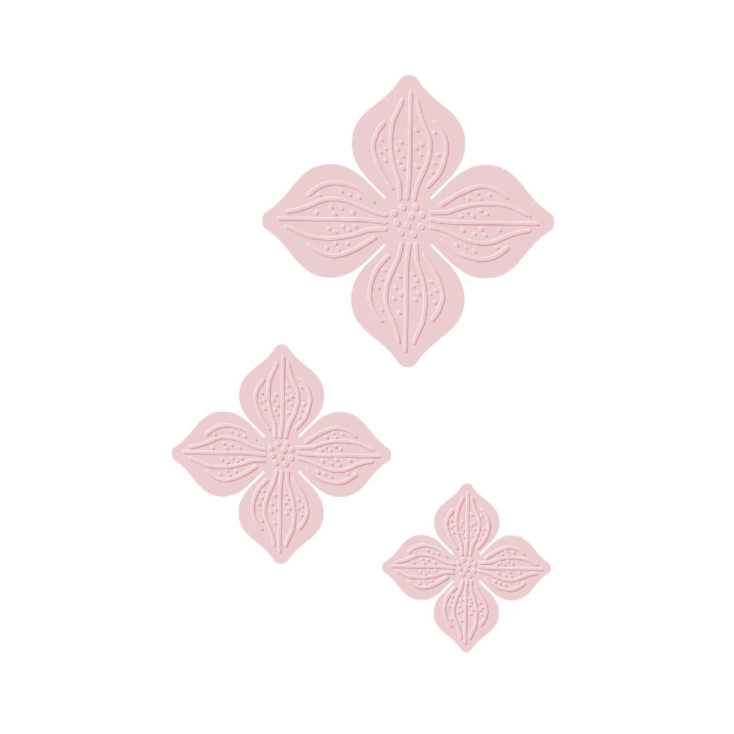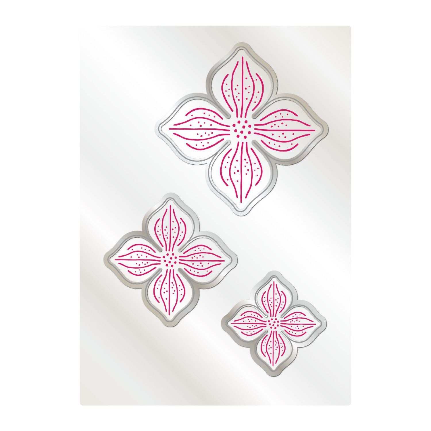 THESE FLOWERS CUT AND EMBOSS IN 3 DIFFERENT SIZES MEANING THEY CAN BE LAYERED TOGETHER TO MAKE 1 LARGE FLOWER OR LAYERED UP INDIVIDUALLY TO MAKE SMALLER FLOWERS