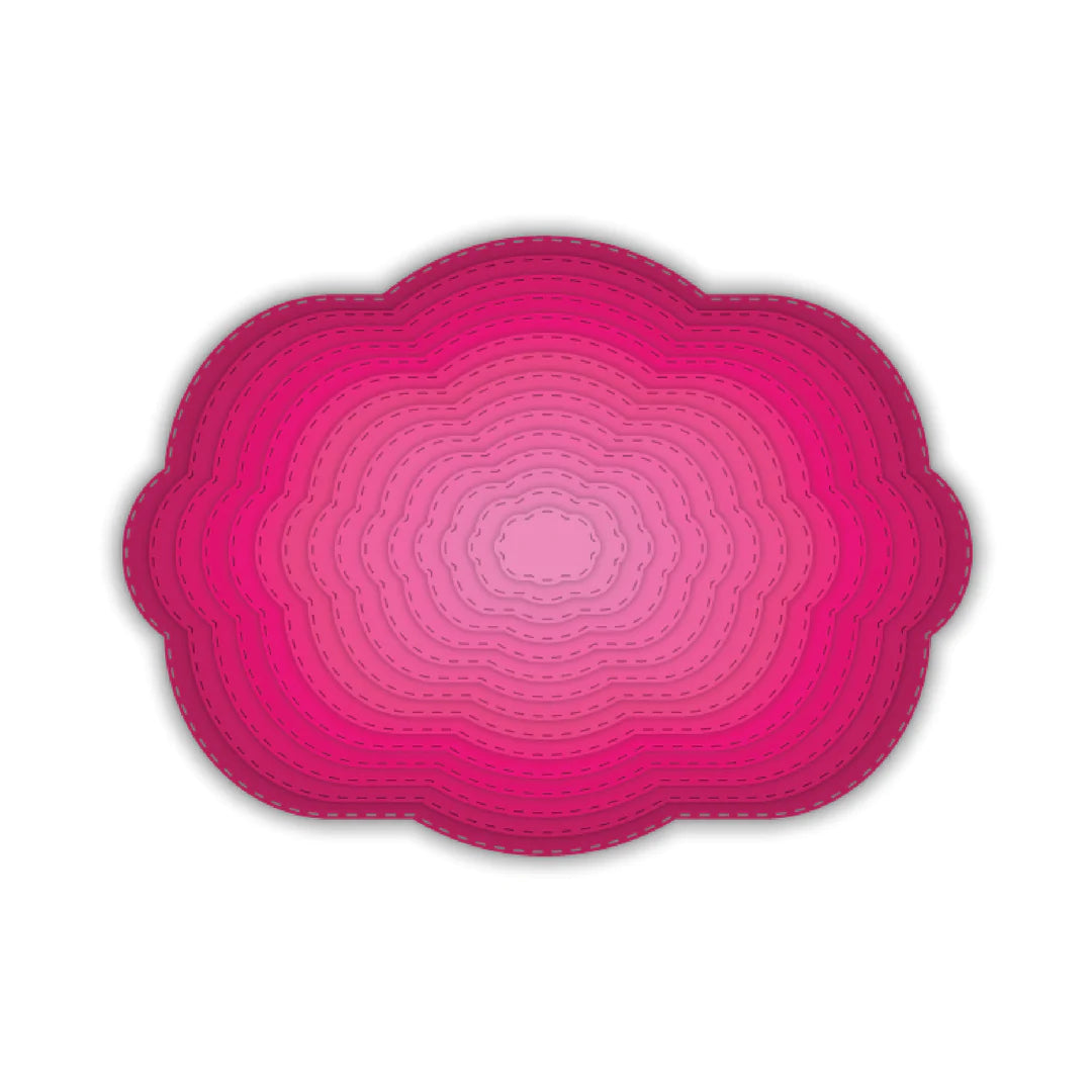 LAUNCHED AS PART OF THE BEAUTIFUL GRANDE FLOWERS ADDITIONS RANGE, THIS VERSATILE SET OF 15 NESTING BUBBLE FRAME DIES IS PERFECT FOR A WIDE RANGE OF CRAFTING PROJECTS