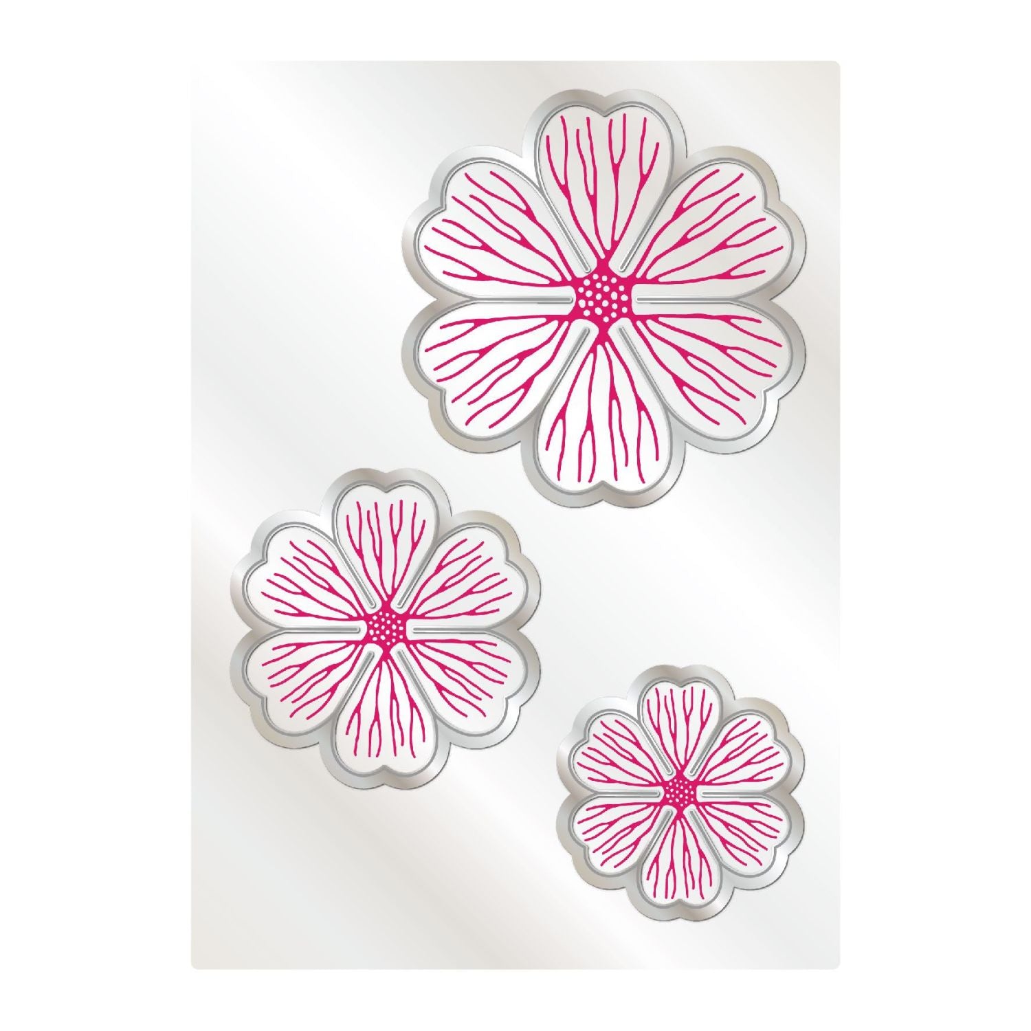 SIMPLY RUN THROUGH YOUR DIE CUTTING MACHINE TO CUT AND EMBOSS A BEAUTIFUL TRIO OF FLOWER DESIGNS IN ONE GO, READY TO BUILD YOUR 3D BLOOMS!