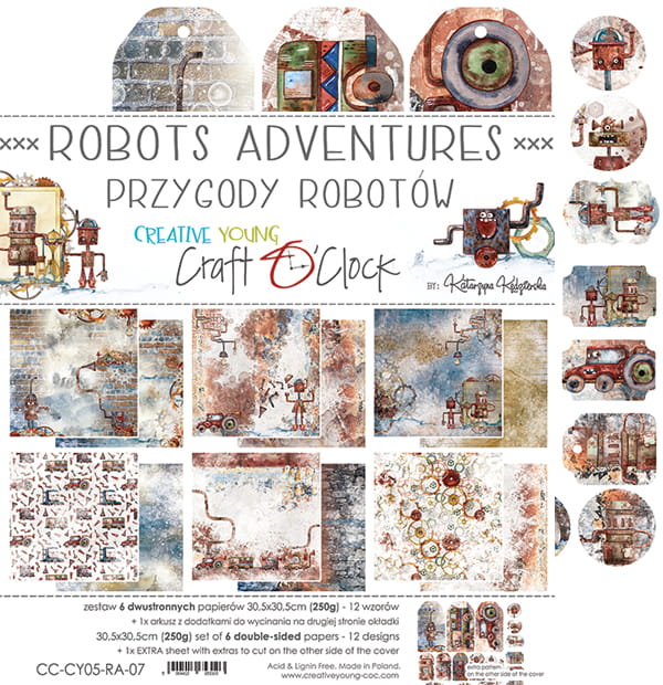 ROBOTS ADVENTURES 12" X 12" SET OF PAPERS - CRAFT O'CLOCK