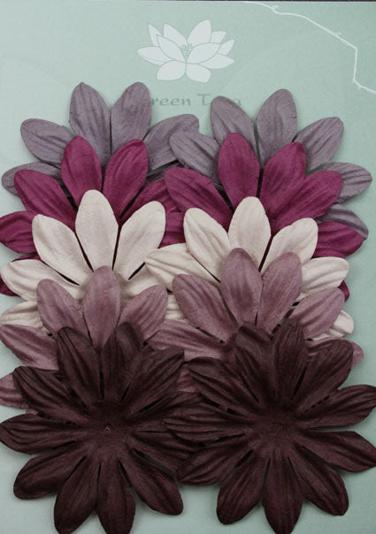 GORGEOUS PACK OF 10 PETAL FLOWERS IN BERRY COLOURS BY GREEN TARA