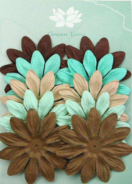 GORGEOUS PACK OF 10 PETAL FLOWERS IN CHOC MINT COLOURS BY GREEN TARA