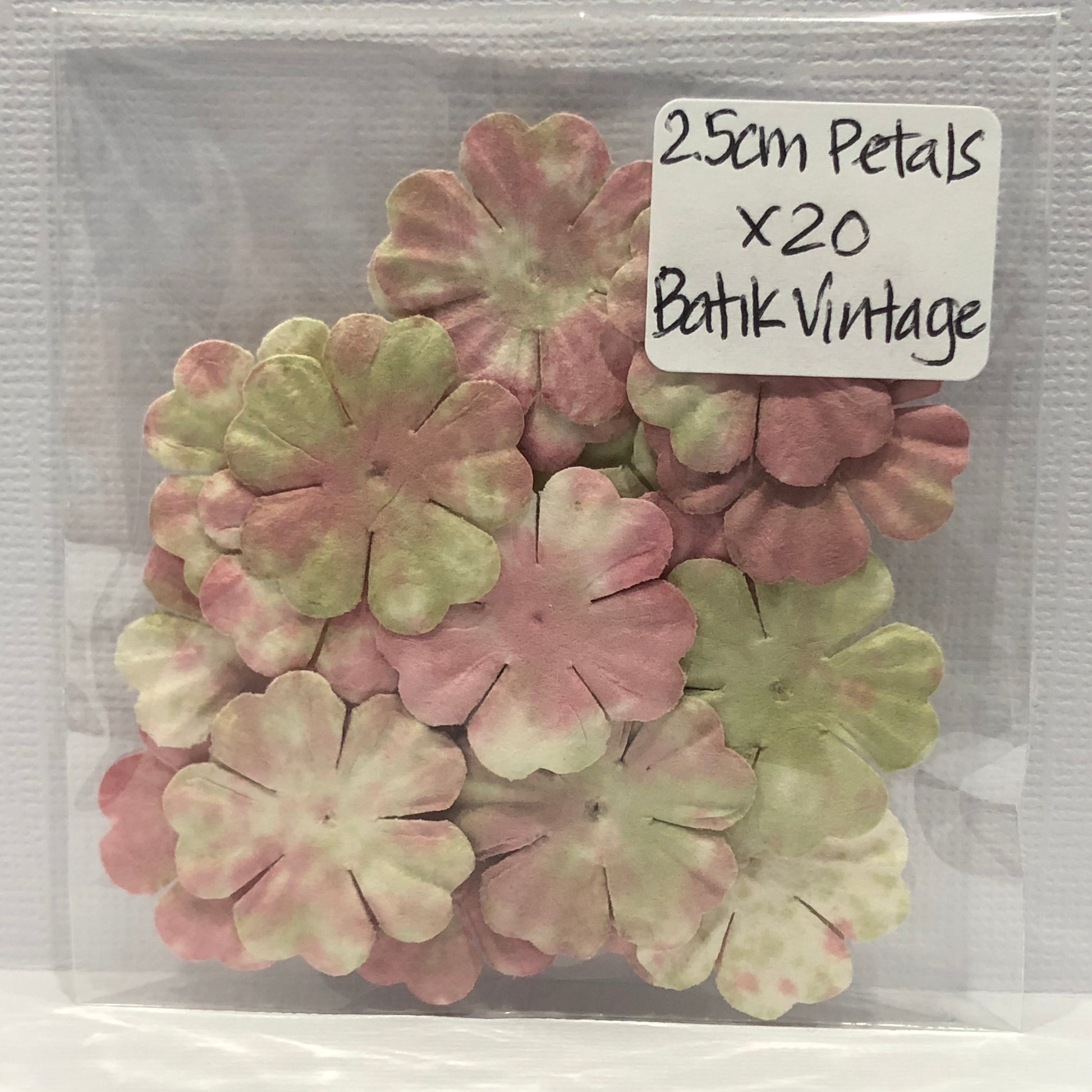 BATIK VINTAGE 2.5CM PETALS - 20 PACK - GREEN TARA