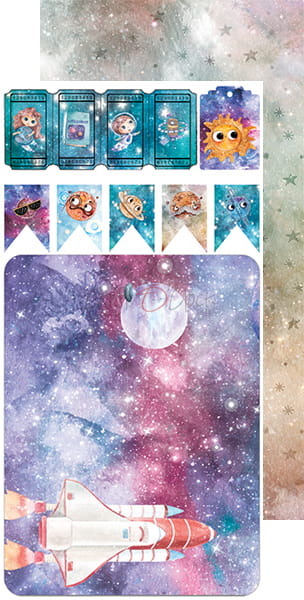 A GORGEOUS SET OF ALBUM/JOURNAL EXTRAS TO MATCH THE COSMIC ADVENTURES PAPER COLLECTION PACKS