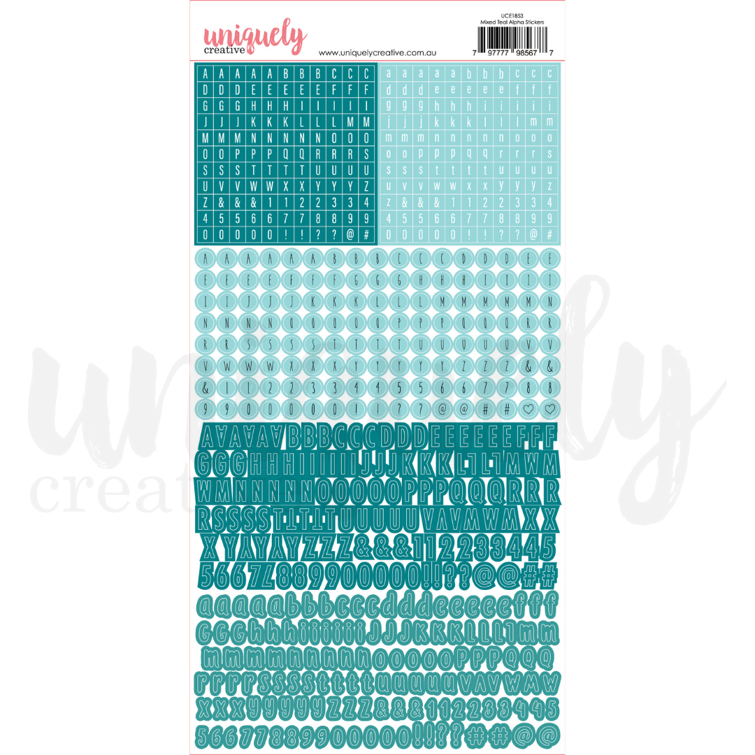 MIXED TEAL ALPHA STICKERS - BY UNIQUELY CREATIVE