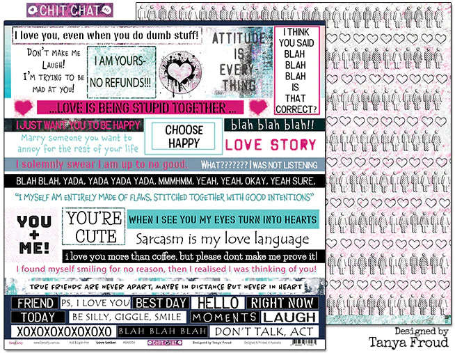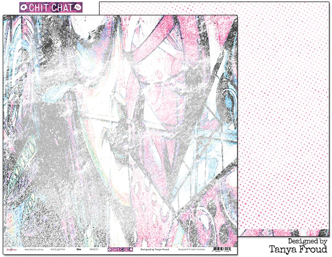 AN ABSOLUTELY BEAUTIFUL COLLECTION OF 12" X 12" DOUBLE SIDED PAGES EXCLUSIVELY DESIGNED BY TANYA FROUD AS PART OF THE CHIT CHAT RANGE