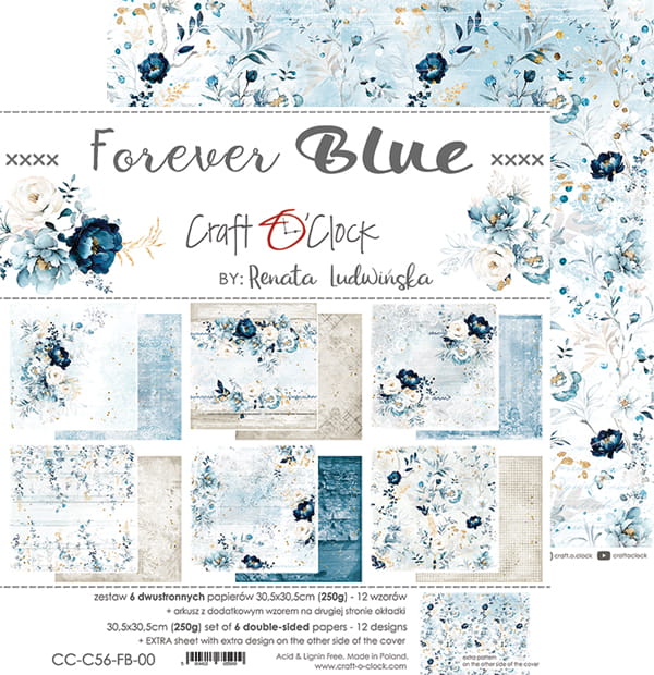 FOREVER BLUE 12" X 12" SET OF PAPERS - CRAFT O'CLOCK