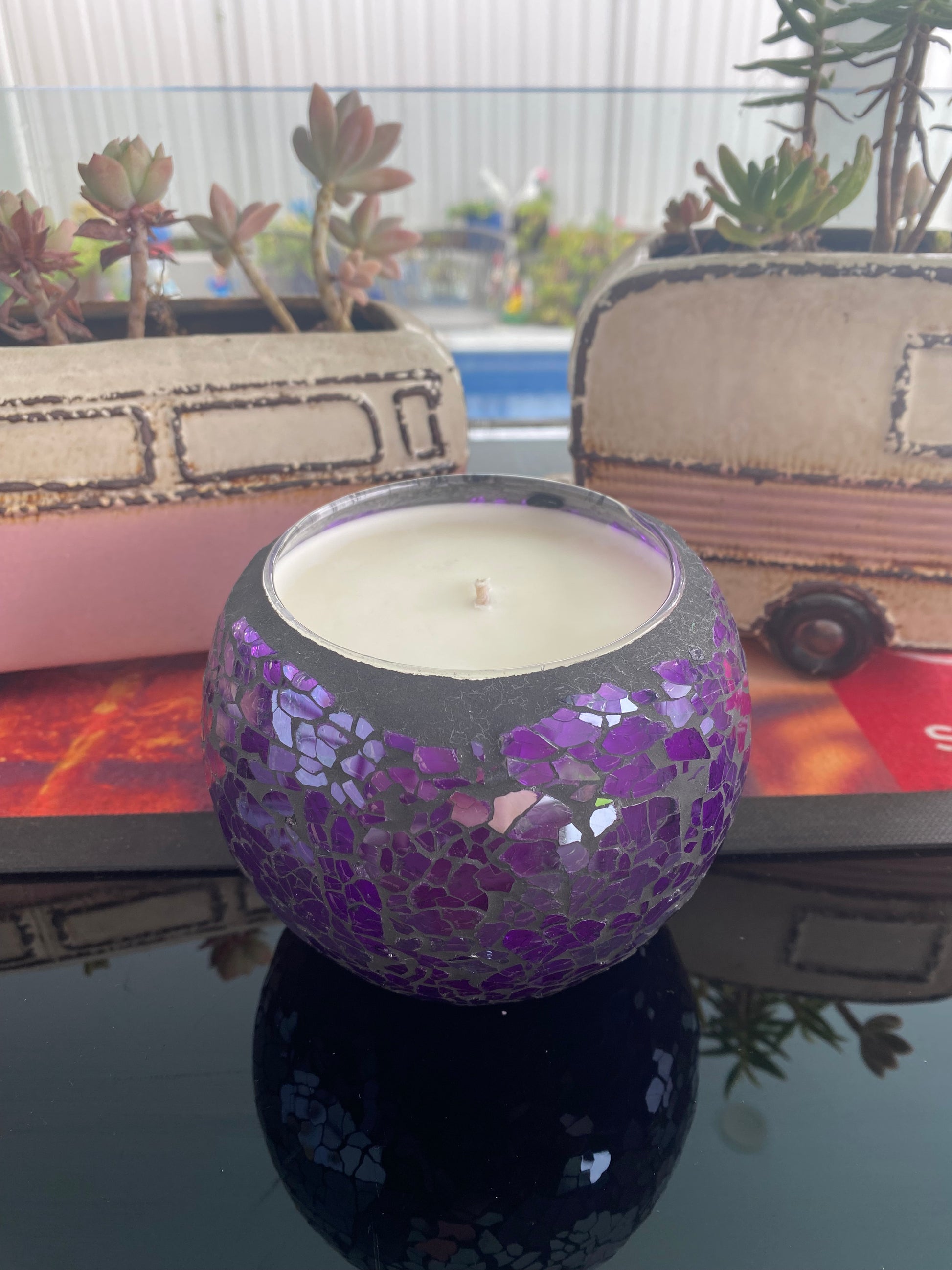NATURAL SOY WAX CANDLE - BLACK RASPBERRY SUGAR LARGE PURPLE MOSAIC