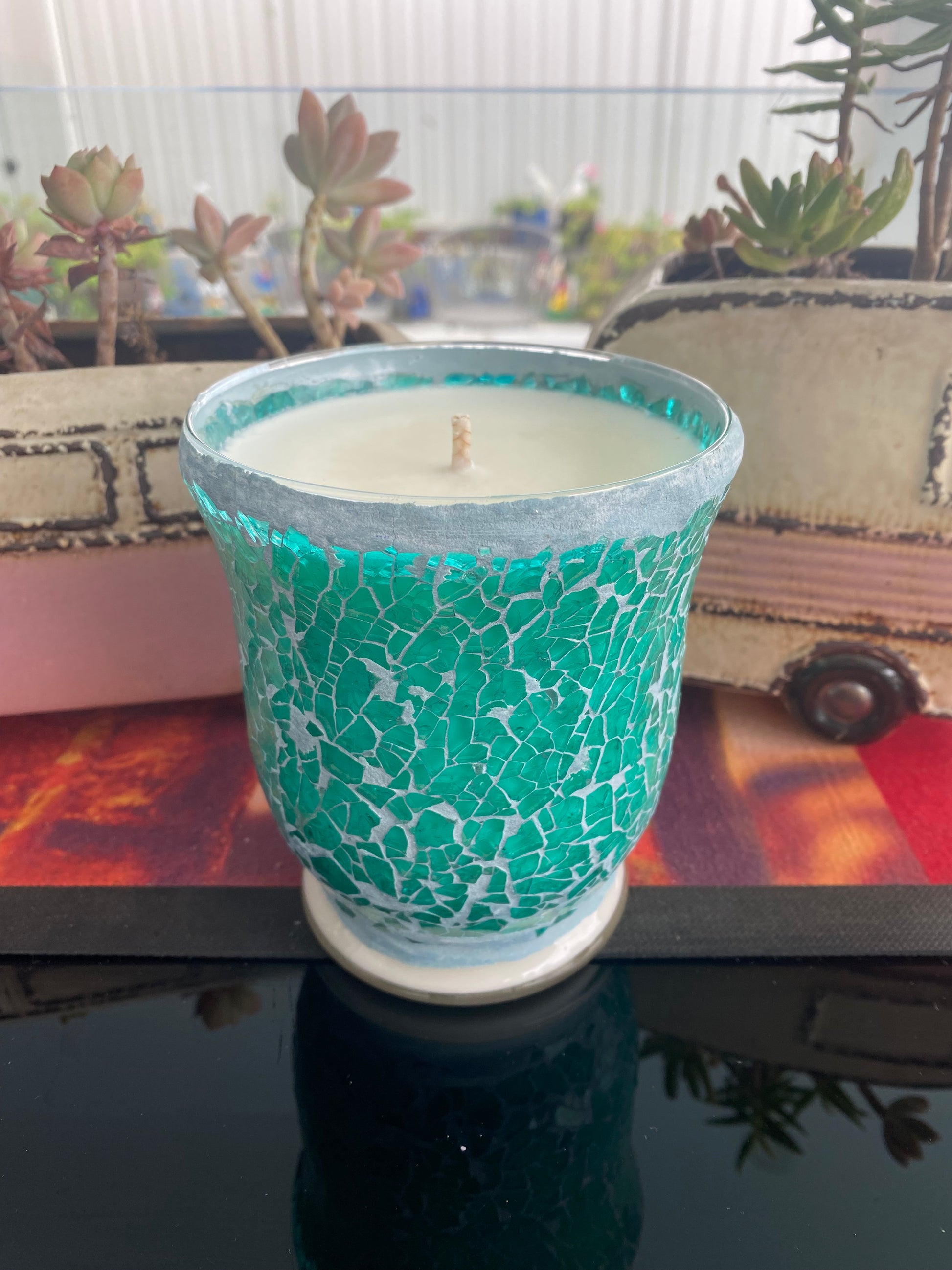 NATURAL SOY WAX CANDLE - MANGO & PASSIONFRUIT MOJITO SCENTED MOSAIC HURRICANE