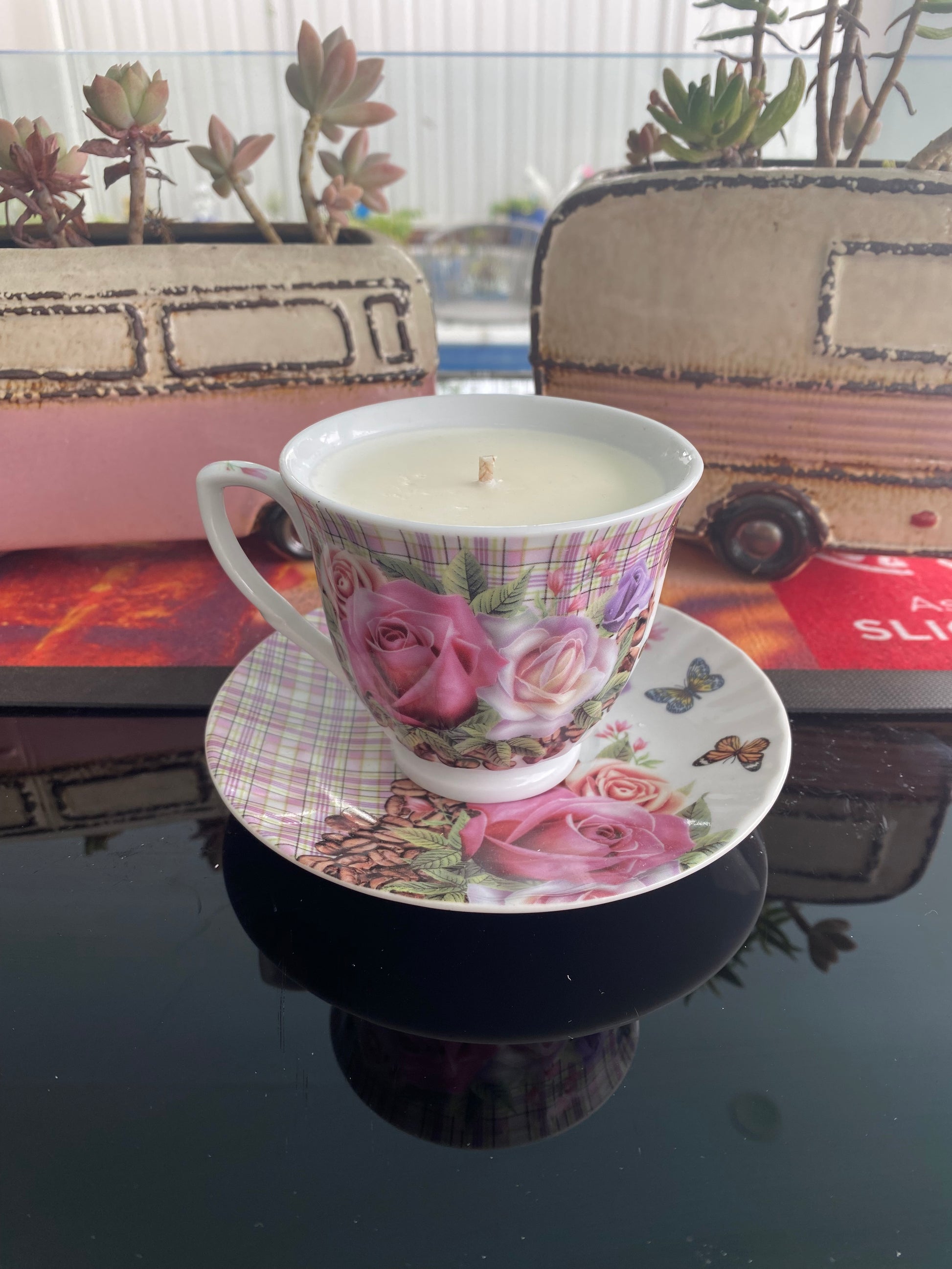 A BEAUTIFUL TEACUP/SAUCER SET CANDLE