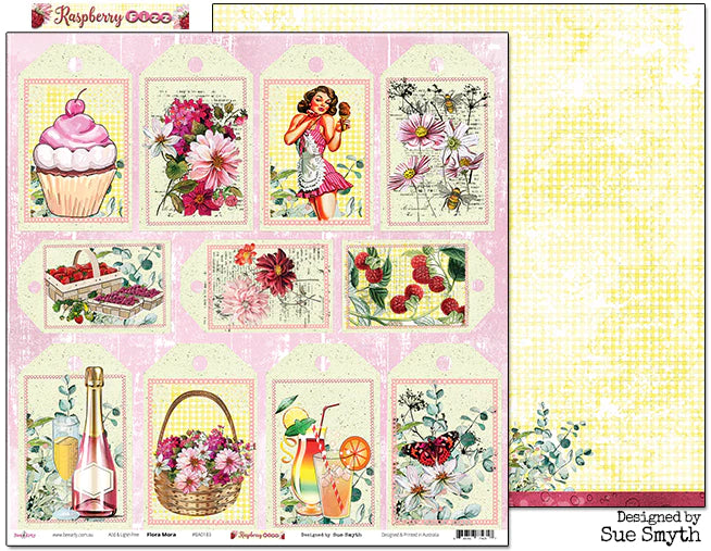 AN ABSOLUTELY BEAUTIFUL COLLECTION OF 12" X 12" DOUBLE SIDED PAGES EXCLUSIVELY DESIGNED BY SUE SMYTH AS PART OF THE RASPBERRY FIZZ RANGE