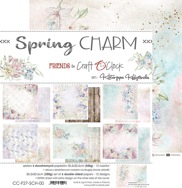 SPRING CHARM 12" X 12" SET OF PAPERS - CRAFT O'CLOCK