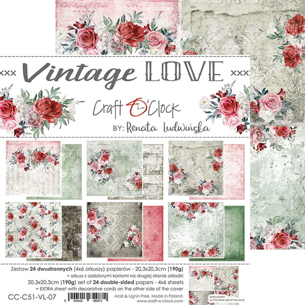VINTAGE LOVE 8" X 8" SET OF PAPERS